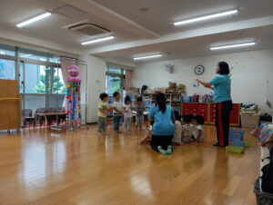 2024.06.28 ★こじか/こどもたちのようす★, お知らせ 室内での様子 りすぐみはボールプールで遊びました。 うさぎぐみは大型積木で遊びました。 こぐまぐみは風船で遊びました。 やぎぐみは楽器遊びをしました。 ぱんだぐみさんは七夕かざりをつくりました。 きりんぐみはザリガニの絵を描きしました。 雨の日でもにぎやかです!