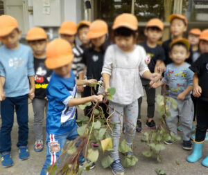 昨日、ぱんだぐみさんときりんぐみさんがKOJIKA KIDSの畑で芋掘りをしました!!