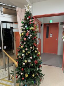 2024.12.10 ★こじか/こどもたちのようす★, お知らせ もうすぐクリスマス★ 昨日、きりんぐみさんが玄関のクリスマスツリーに飾り付けをしてくれました。 園の外のライトアップも始めました! クリスマスが楽しみですね★