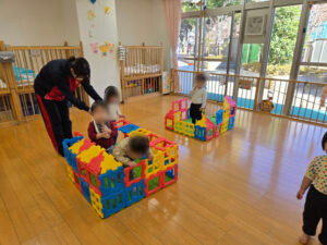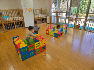 大人が組み立てていると、ブロックを持ってきてくれるお子さんや、凸凹を合わせて上手に組み立ててくれるお子さんもいました!