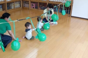 手で触って感触を確かめたり、ゆらゆら揺れる風船を追いかけたりして楽しんでいましたよ。
