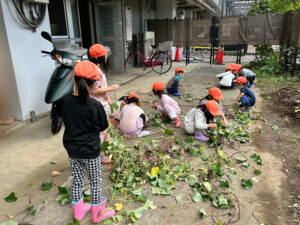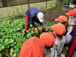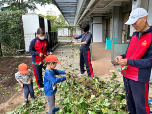 2025.10.27 ★こじか/こどもたちのようす★, お知らせ 🦒さつまいものつる切り さつまいものつる切りをしました。 つるを切りながら、「大きなさつまいもが採れるかな~?」と子どもたちは楽しみにしていましたよ。 切ったつるを使って、今度クリスマスのリース作りをするそうです! 楽しみがたくさんですね☆