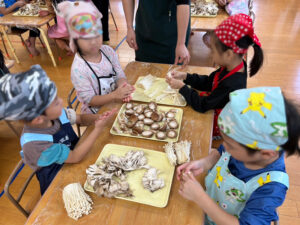 「きのこのにおいがきついね!」と言っていたお子さんもいましたが、楽しそうにお手伝いしてくれましたよ。