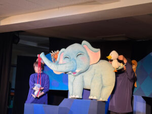 劇団プークの方たちが来てくれて、「森の四季」と「ねずみくんのチョッキ」という人形劇を見ました。