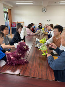 劇団の方たちが職員向けに人形劇のワークショップをしてくださりました。