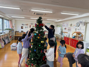 きりんぐみのみなさんが、クリスマスツリーの飾り付けをしてくれました。