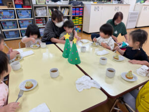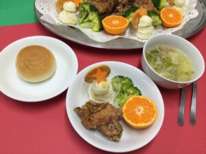 今日のお昼ご飯とおやつは、クリスマスメニューでした!