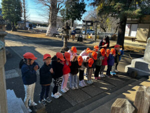 2026.01.08 ★こじか/こどもたちのようす★, お知らせ 諏訪神社 ぱんだぐみさんときりんぐみさんで、諏訪神社にお参りに行きました。 お参りをしたあとは、近くの公園で遊びました。 体をたくさん動かして、今年も一年元気に過ごせるといいですね☆
