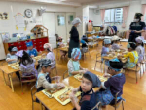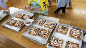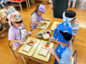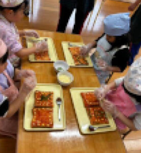 2026.02.26 ★こじか/こどもたちのようす★, お知らせ 🦒ピザトースト作り 「ピザ作り、がんばるぞ!!」 調理室の先生から教わり、ソースを塗ったり具を乗せたり、、、 とてもおいしそうですね❤ 焼いたら完成です!美味しかったかどうか、お子さんに聞いて見てくださいね!