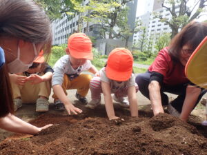 2026.04.14 ★こじか/こどもたちのようす★, お知らせ 🐐お花植えました 先日、雑草や小石を取り除いた場所にお花を植えました!! 子ども達が大事に育てているので、送迎時に見て下さい。 親子の会話にも花が咲くかな??